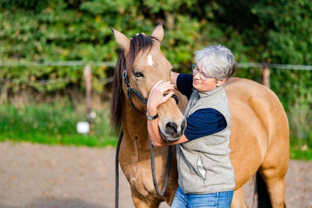 Ich löse immer das ganze Pferd, denn Verspannungen, Schmerzen, Bewegungseinschränkungen oder Blockaden an einer Stelle des Körpers haben immer Einfluss auf andere Bereiche – sehr häufig diagonal.